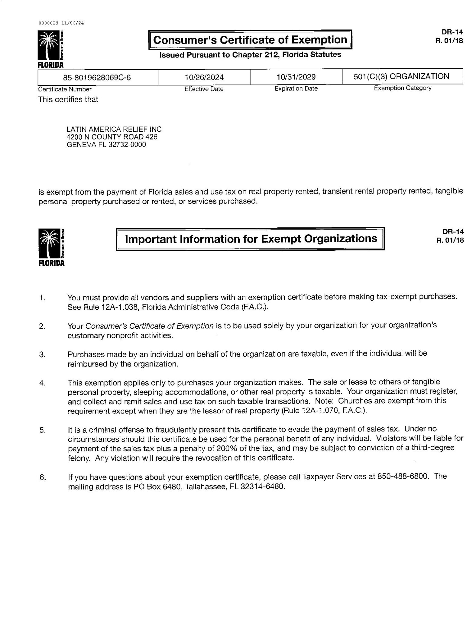 Florida Consumer's Certificate of Exemption